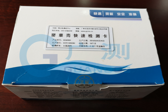 广测牌罂粟壳快速检测卡用于快速检测火锅、调料和各种汤料中的罂粟壳残留,整个检测过程只需要 3~5分钟,灵敏度为液体/半固体样本40 ng/mL(ppb),固体样本/食用醋样本100 ng/mL(ppb),适用于各类餐饮企业及检测机构。